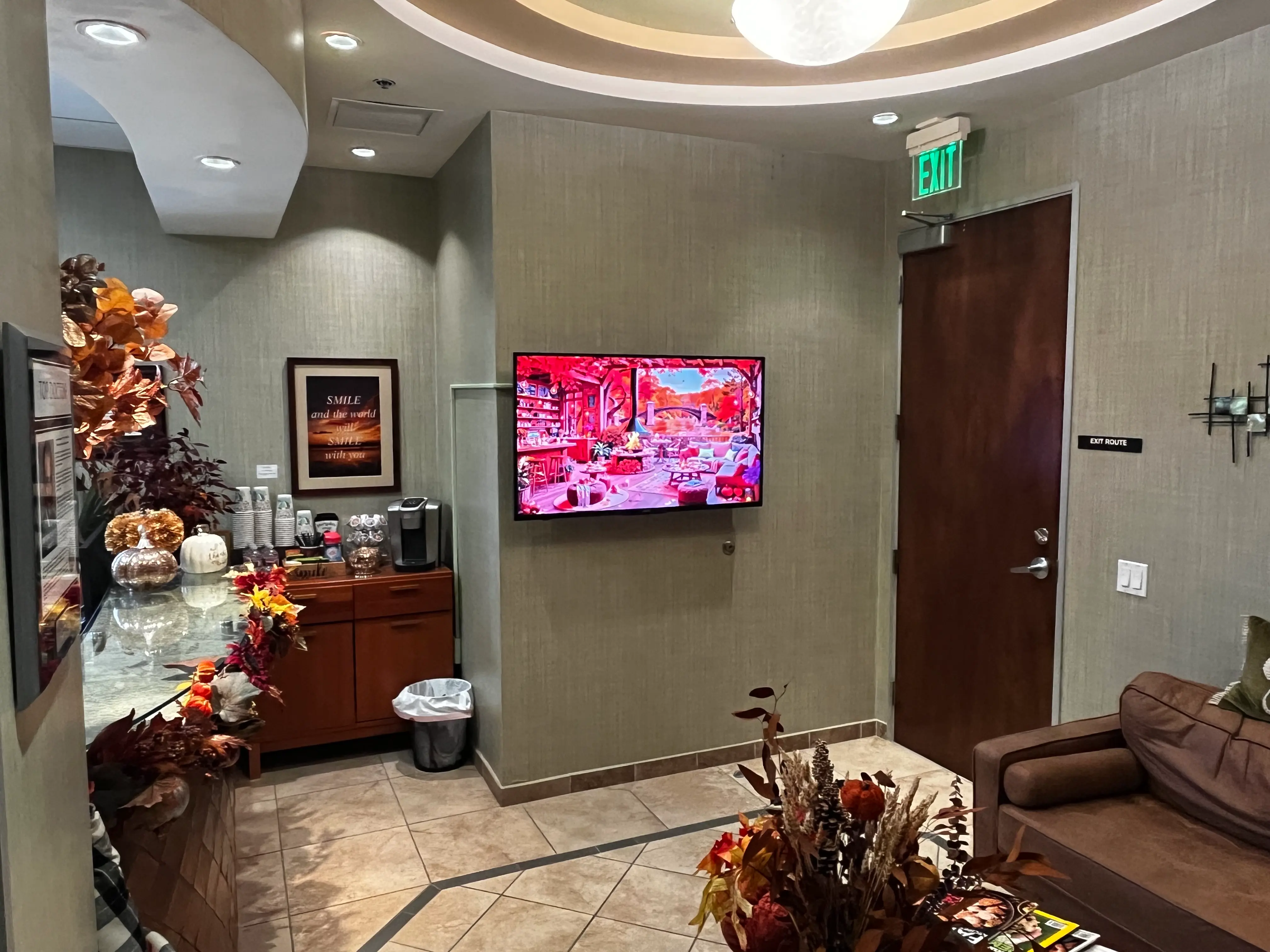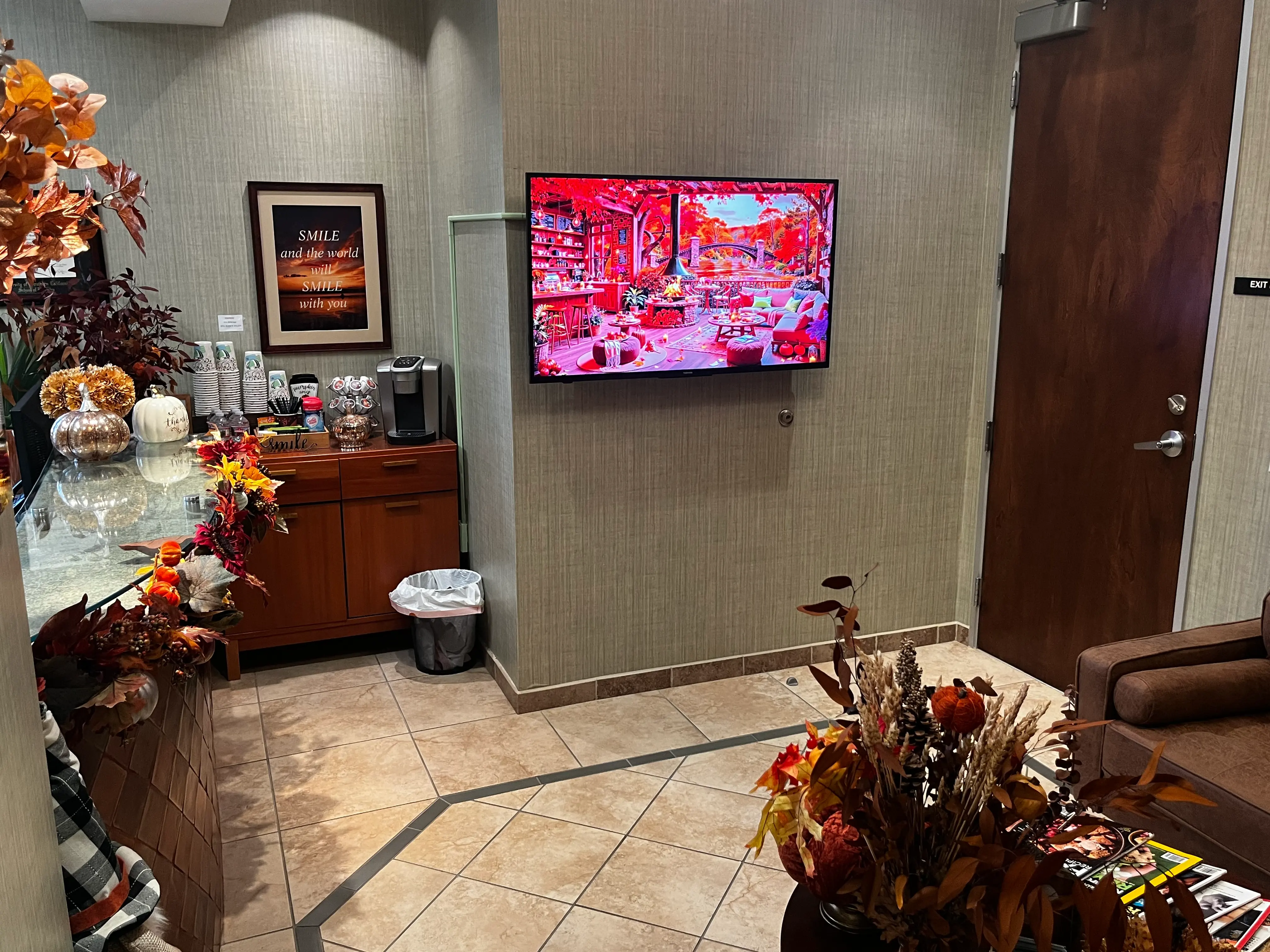 From the moment you step into our office, you'll be greeted by a welcoming and relaxing atmosphere. Our reception area features comfortable seating, a refreshing water fountain, and complimentary coffee and tea. Treatment rooms are designed with nature-themed framed photos and calming ceiling mural tiles, creating a serene environment for your visit. We also provide relaxing office music to help you feel at ease.